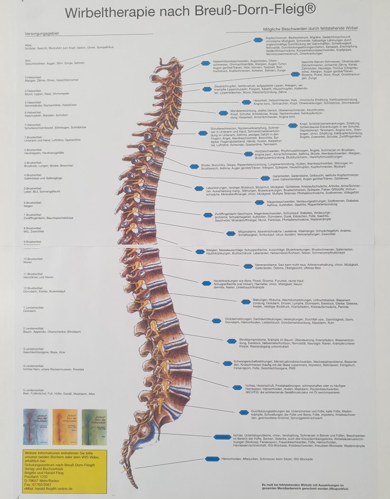 So wie bei der Reflexzonen-Therapie am Fuss, hat man das Selbe auch an der Wirbelsäule . Mit der Wirbelsäule-Therapie behandelt man geziehlt Bandscheibenvorfälle, Kreuzschmerzen, Hüftprobleme, und löst Schulter und Brust Verspannungen.